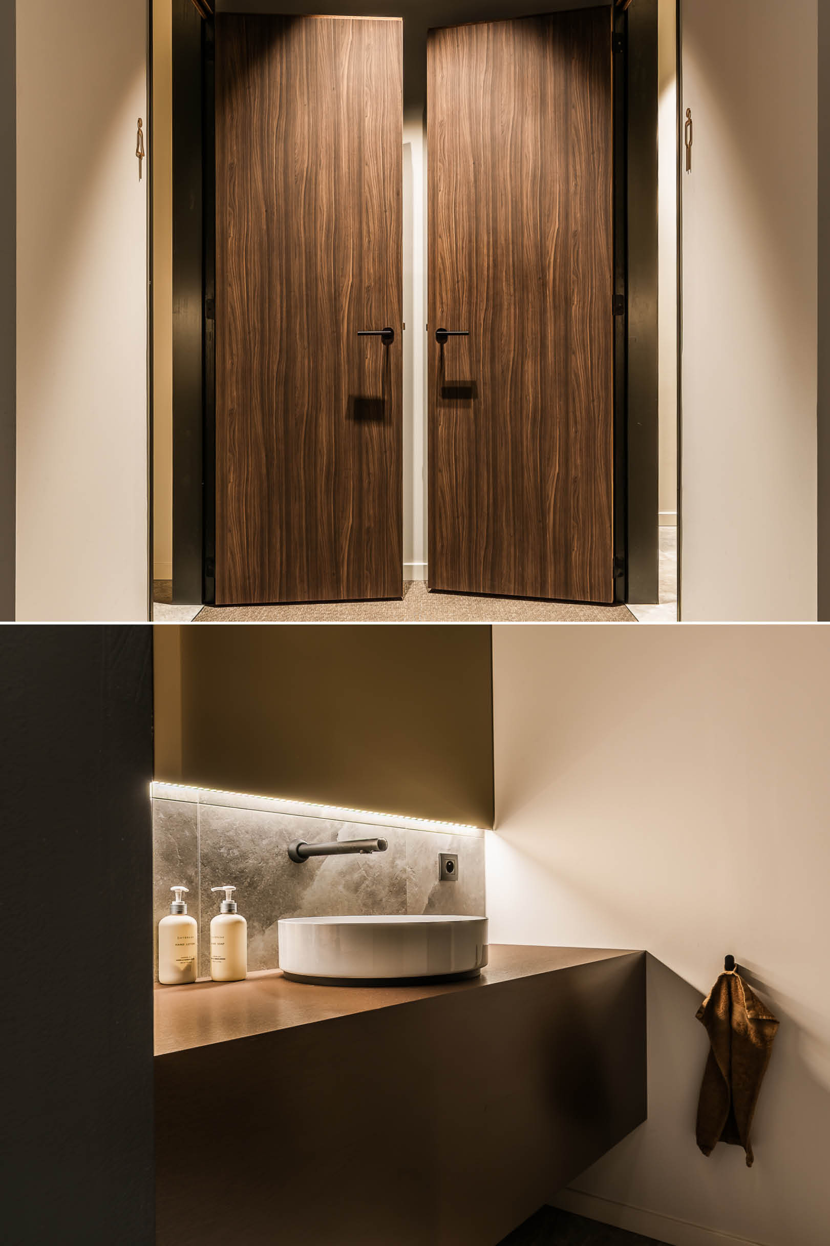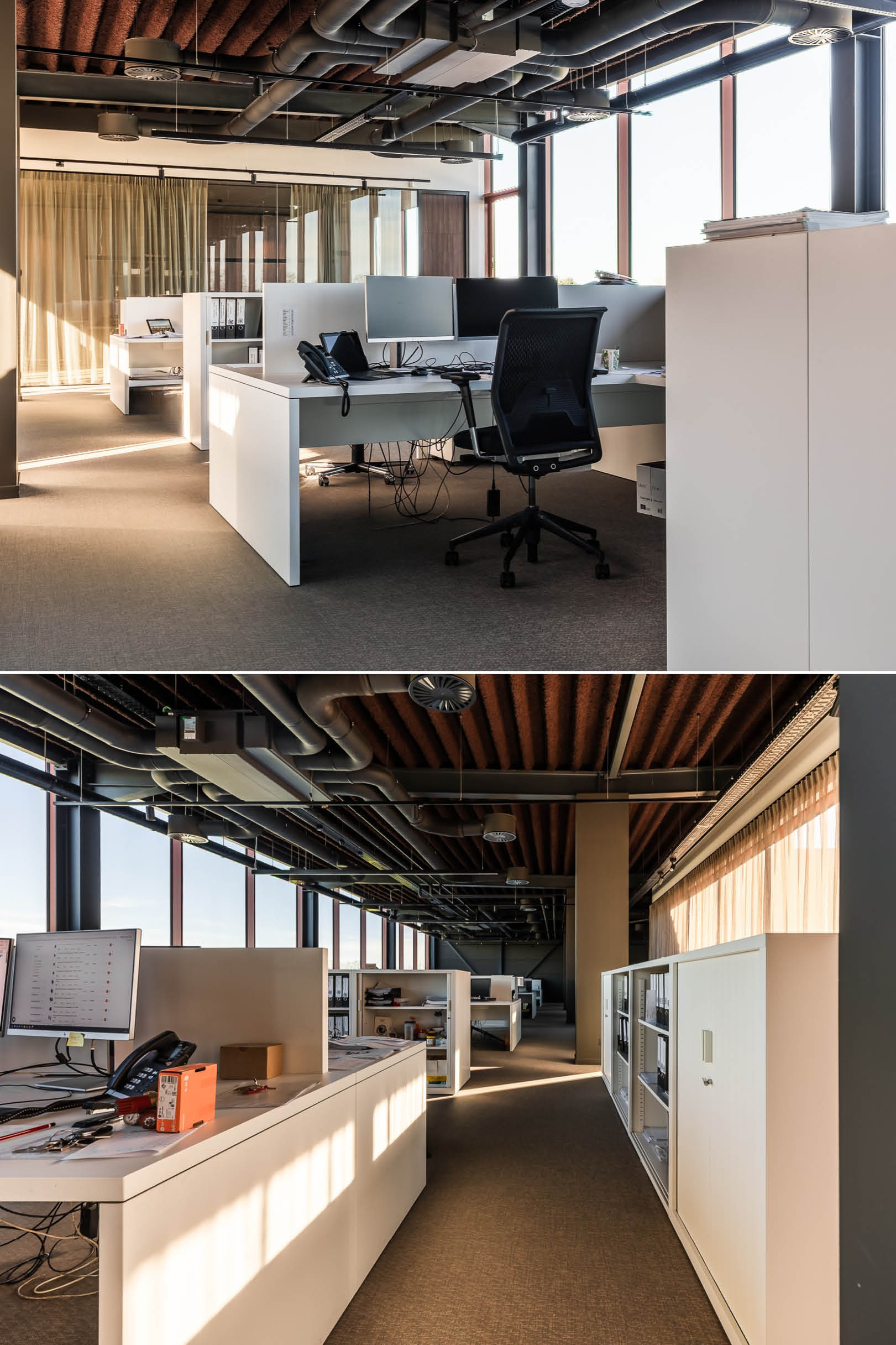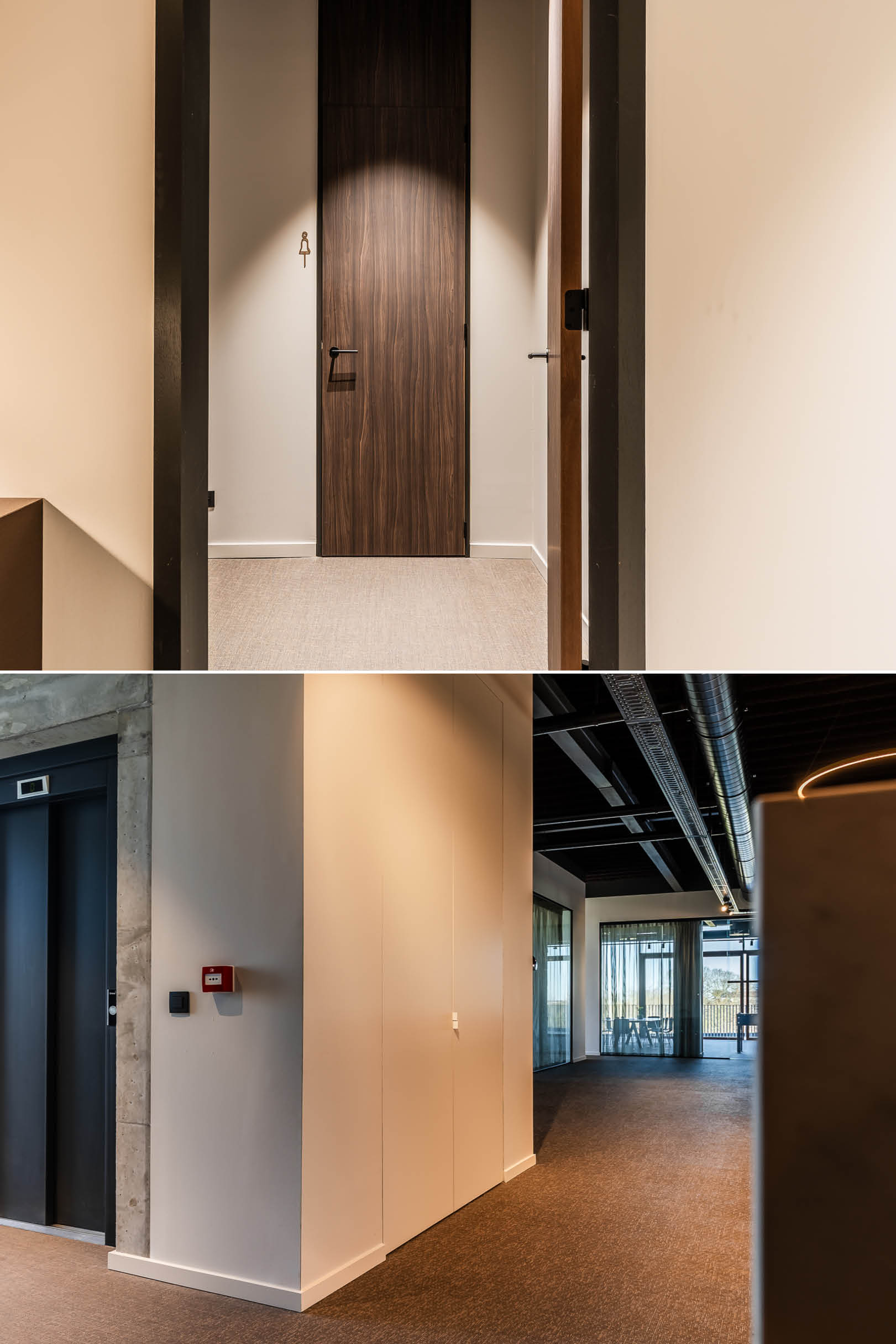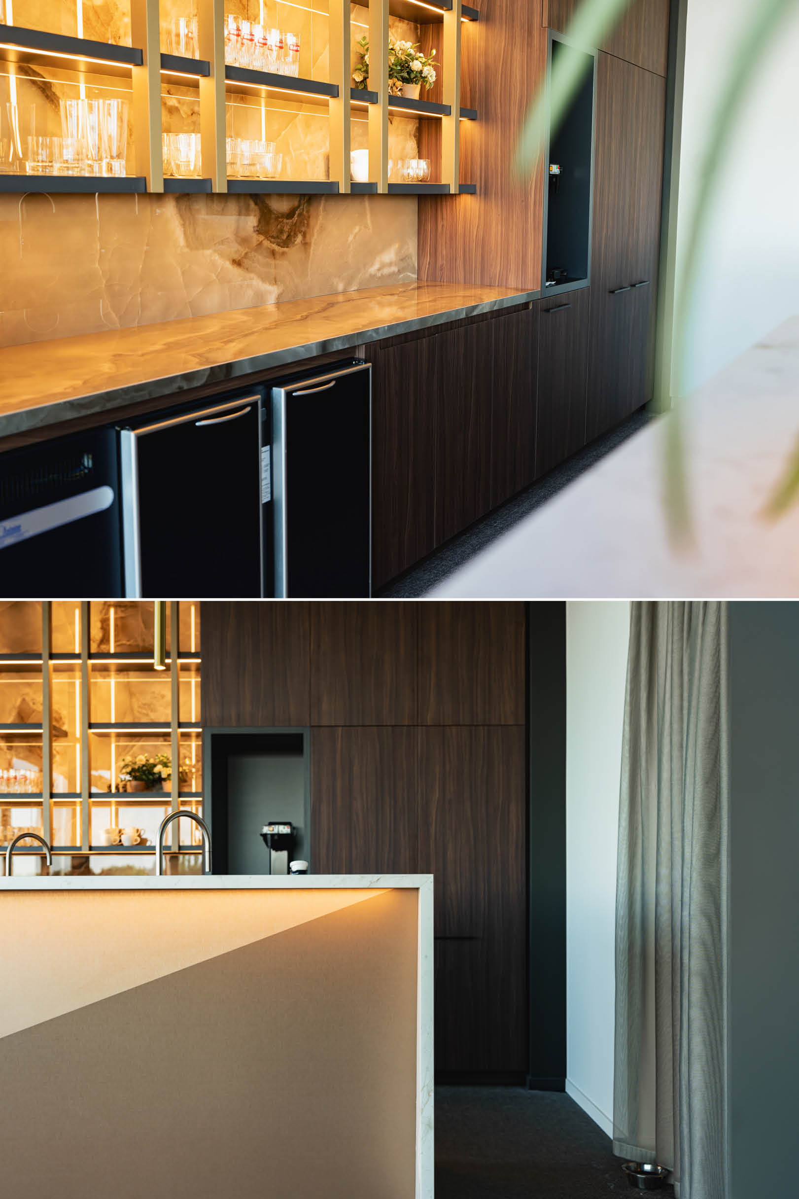 Bij het nieuwe kantoor van HVAC- en sanitairexpert Lieven Deneckere hebben we alle interieur (deuren, maatwerk meubilair, wanden, plafonds…) verzorgd. De eyecatchers? Het baliemeubel en barmeubel. De gouden HPL-accenten en warme houttinten harmoniëren perfect met de natuurstenen afwerking en andere kantoorinrichting. Een nieuwe thuishaven waar het aangenaam werken is.